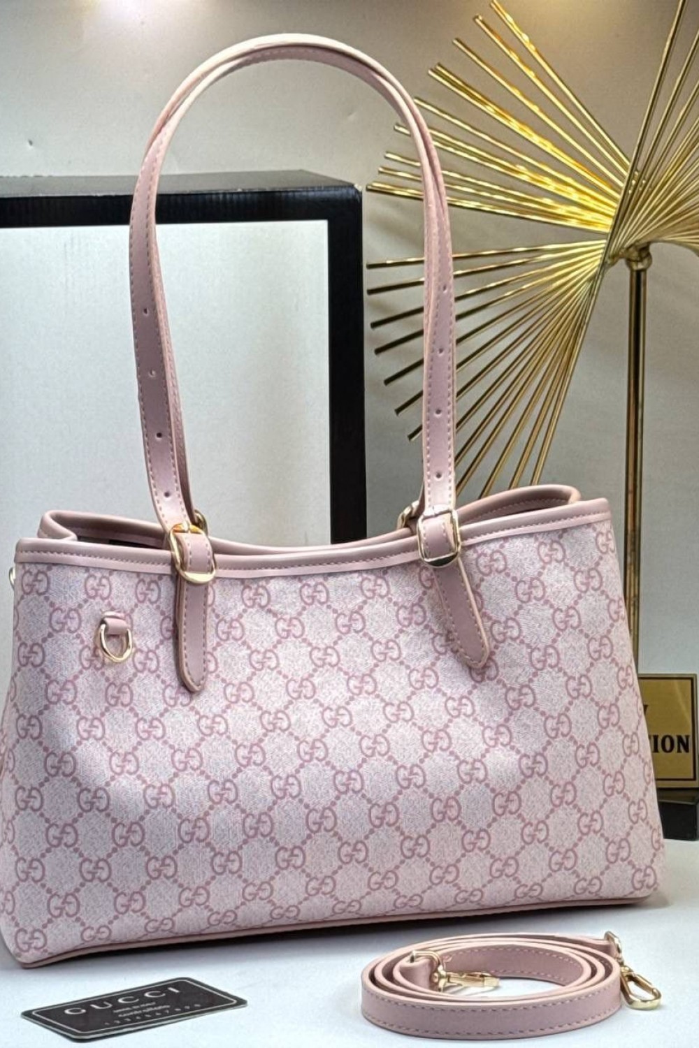 GUCCI GG EMBLEM ORTA BOY TOTE ÇANTA - PUDRA